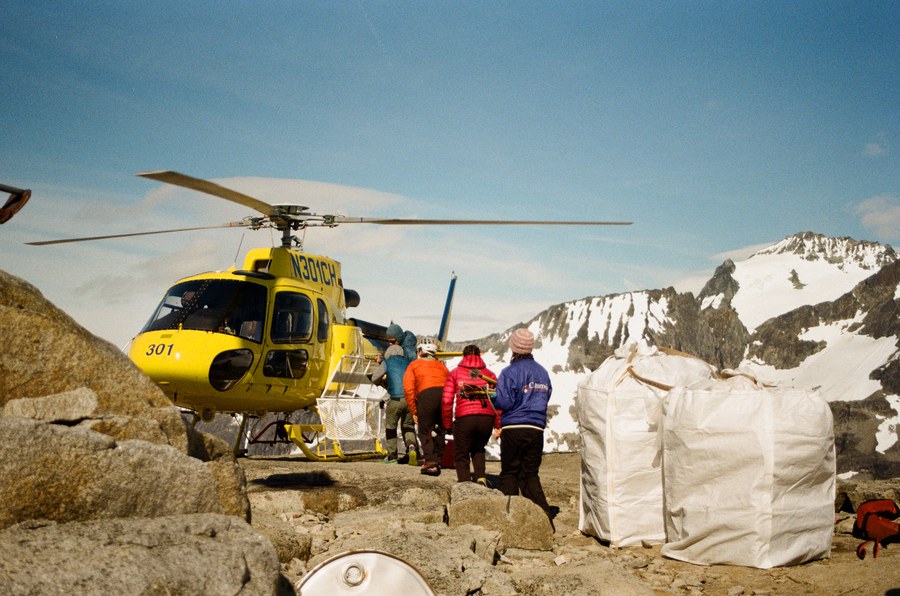 Eine „Mini-Traverse“, eine lange Tagestour mit rund 30 kg Gepäck bei starkem Regen, diente der praktischen Übung aller Bewegungsformen unter realen Bedingungen. Der Start in Camp 17 verlief nicht ohne Herausforderungen, was sich im Nachhinein als gute Belastungsprobe erwies. In der ersten Woche war das Wetter so schlecht (starker Wind und Regen), dass Helikopterflüge mit Ausrüstung und Lebensmitteln mehrfach verschoben werden mussten. Wir lebten zunächst von den Konservenvorräten des Vorjahres und verfügten nur über einen Teil unserer Sicherheitsausrüstung. Daher mussten wir das Training abwechselnd absolvieren. Erschwerend kam hinzu, dass ich mir kurz vor dem Aufstieg eine Erkältung eingefangen hatte, die sich im feuchtkalten Klima hartnäckig hielt. Zu allem Überfluss brach gleich zu Beginn eine Bindung meiner neu erworbenen Skiausrüstung. Da sie nicht vor Ort repariert werden konnte, organisierte ich telefonisch Ersatz in einem Outdoor-Shop in Juneau.