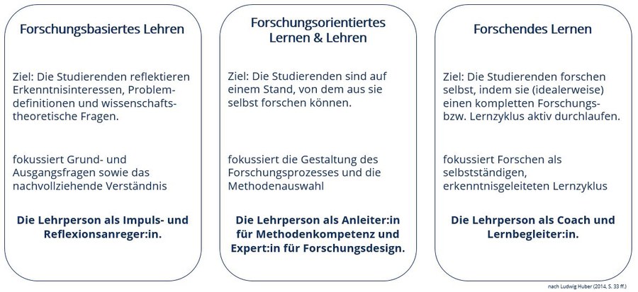 In der Begriffsklärung setzen wir an der TU Dresden auf die Vorarbeit von Ludwig Huber (2014), der den Fokus vor allem auf der Zielstellung hinter den Konzepten legt.