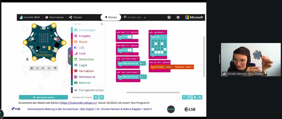 Vorstellung des Calliope minis inklusive des MakeCode-Editors als Tool zur Umsetzung informatischer Bildung.
